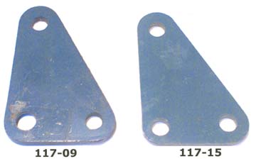 We currently have two versions of this part. They vary by the diameter of the hole for the bolt that goes through the alternator "ear(s)". The 117-09 has a 10mm hole; the 117-15 has an 8mm (approx 5/16") hole. The other two bolt holes are 8mm on both brackets. Thickness is the same on both brackets.